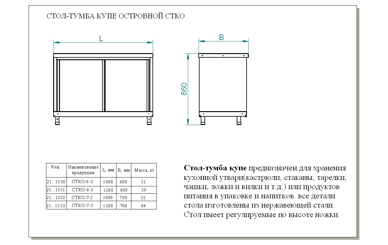 Производственный стол Abat СТКО-7-3 предназначен для раскатки теста, обработки ингредиентов для приготовления блюд, хранения посуды, кухонных принадлежностей и продуктов, не требующих специального температурного режима на предприятиях общественного питания и торговли. Модель оснащена регулируемыми по высоте полкой и ножками.