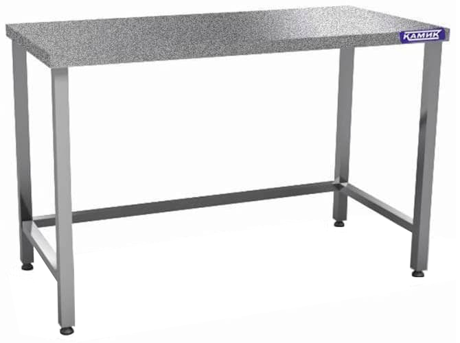 Кондитерский стол КАМИК С-К-4107 используется на предприятиях общественного питания и торговли для работы с тестом и приготовления кондитерских изделий. Модель имеет обвязку ног с трех сторон. Каркас стола выполнен из нержавеющей стали AISI 430, столешница - гранит толщиной 20мм. Ножки - труба 40х40 мм.