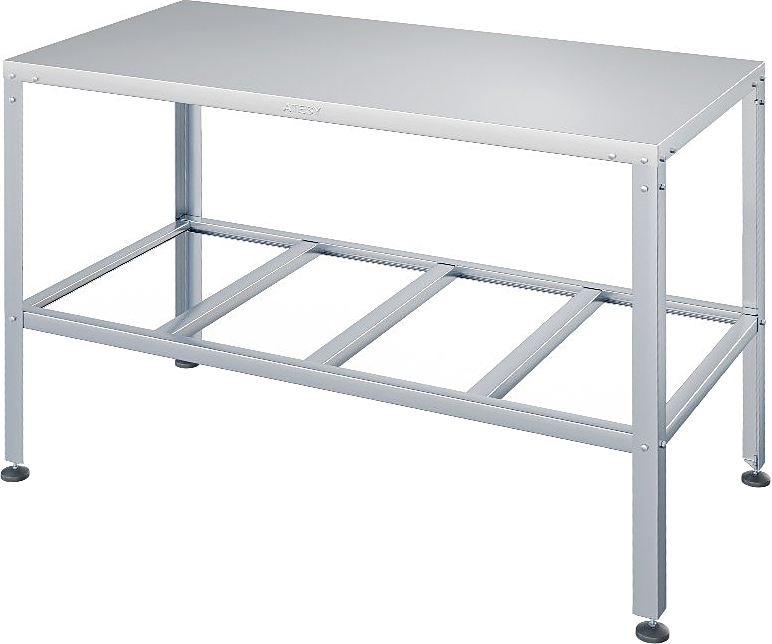 Производственный стол ATESY СР-Б-1-1100.600-02 серии Бюджет используется на предприятиях общественного питания, торговли и пищевых производствах для раскатки теста, приготовления различных блюд и хранения кухонных принадлежностей. Материал рабочей поверхности – нержавеющая сталь AISI 430 усилена листом ЛДСП (толщина 16 мм), материал каркаса и решетчатой полки – оцинкованная сталь (уголок 40x40 мм толщиной 1.2 мм), конструкция - разборная.