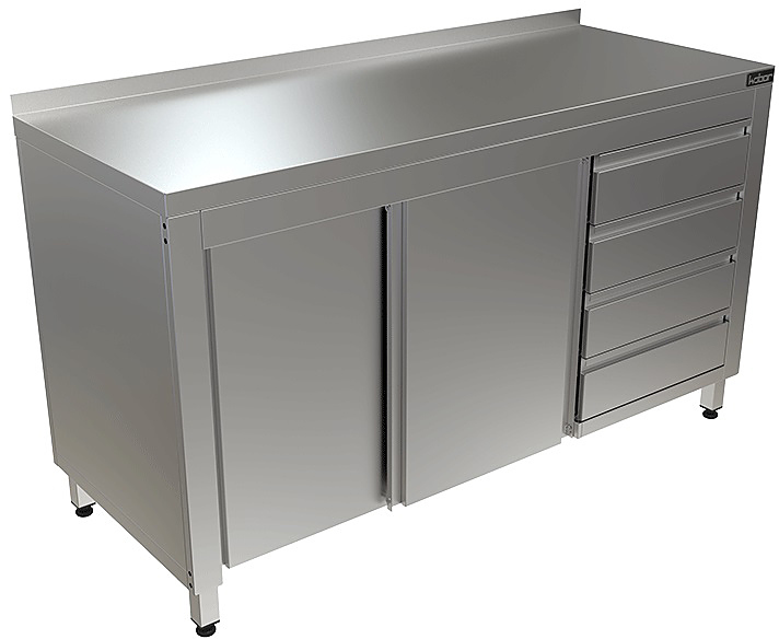 Стол производственный Кобор СТБ/1-120/70/К используется на предприятиях общественного питания, торговли и пищевых производствах для хранения кухонной утвари и обработки различных ингредиентов перед приготовлением. Материал каркаса - высококачественная нержавеющая сталь (труба 40х40 мм), материал столешницы - высококачественная нержавеющая сталь AISI 430, усиленная листом ЛДСП (толщина 16 мм).