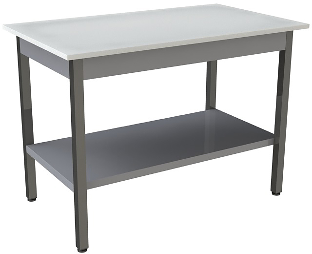 Производственный стол Restoinox СПП-18/8-П предназначен для обработки пищевой продукции, хранения посуды и кухонного инвентаря на предприятиях общественного питания, торговли и пищевых производствах. Опоры ножек регулируются по высоте. Материал каркаса - нержавеющая сталь AISI 430 (40х40 мм), материал сплошной полки - нержавеющая сталь, материал столешницы - полипропилен