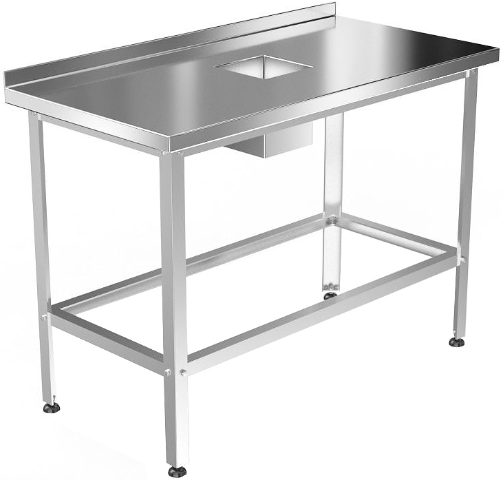 Производственный стол для сбора отходов EKSI ССОБ-600/600-с используется на предприятиях общественного питания, торговли и пищевых производствах для раскатки теста и обработки различных ингредиентов. Материал каркаса - уголок из оцинкованной стали, материал столешницы - нержавеющая сталь AISI 430, усиленная листом ЛДСП.