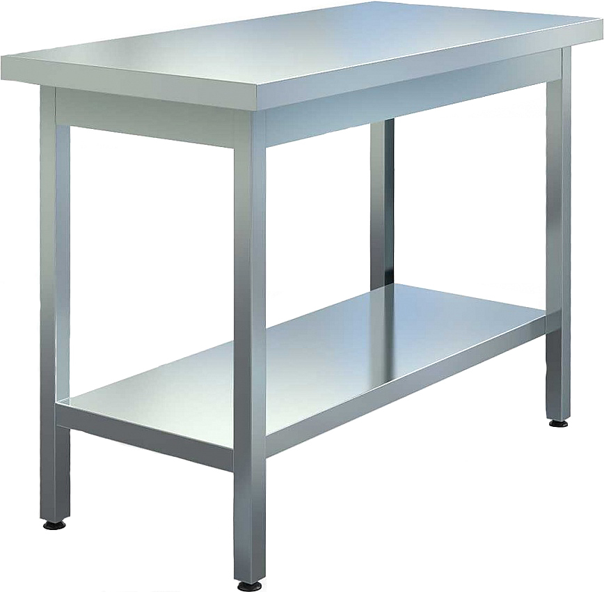 Производственный стол Assum СП-П2-8/8 серии Premium-2 используется на предприятиях общественного питания, торговли и пищевых производствах для работы с тестом, обработки ингредиентов перед приготовлением различных блюд и хранения кухонного инвентаря. Материал столешницы - нержавеющая сталь AISI 430 с листом ЛДСП, материал полки и каркаса - нержавеющая сталь AISI 430 (труба 40х40 мм толщиной 0.7 мм), материал опор ножек - пластик.