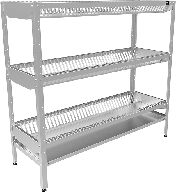 Стеллаж Кобор СКС-120/30/430 предназначен для хранения и сушки посуды на предприятиях общественного питания, торговли и в промышленно-производственных помещениях. Каркас выполнен в виде уголка 40х40 мм из нержавеющей стали, полки - из нержавеющей стали AISI 430. Уникальная система крепления полок обеспечивает жёсткость конструкции стеллажа.