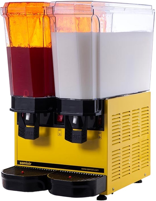 Сокоохладитель Samixir 40.SMY используется в ресторанах, кафе, барах, супер- и гипер-маркетах, магазинах, на предприятиях уличной торговли и в развлекательных центрах для охлаждения и розлива различных сокосодержащих напитков. Модель оснащена механическим термостатом, антивандальной чашей из поликарбоната, поддоном для сбора капель со встроенным индикатором воды.