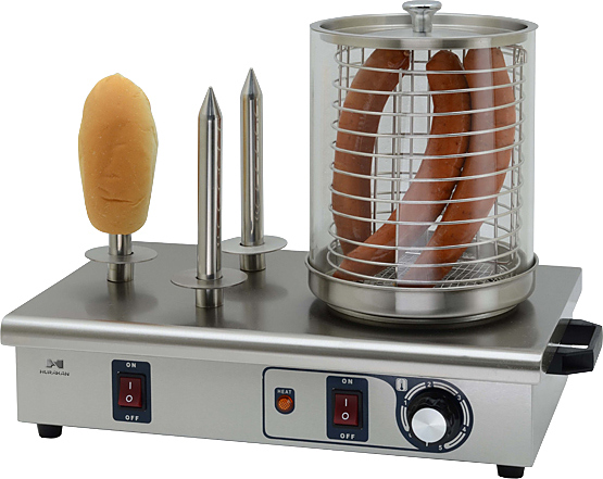 Аппарат для хот-догов Hurakan HKN-Y03 используется на предприятиях общественного питания и торговли для отваривания и хранения в горячем виде сосисок и подогрева булочек. Модель оснащена регулятором температуры, раздельным нагревом колбы и штырей, паровой баней и 3 нагреваемыми штырями. Корпус выполнен из нержавеющей стали и крашенного металла, штыри - из нержавеющей стали, колба - из стекла.