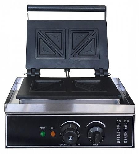 Вафельница Hurakan HKN-GES14 SANDWICH используется на предприятиях общественного питания и торговли для приготовления вафель в форме треугольного сэндвича. Модель оснащена регулируемым термостатом. Корпус выполнен из нержавеющей стали, рабочая поверхность - из чугуна с антипригарным покрытием.