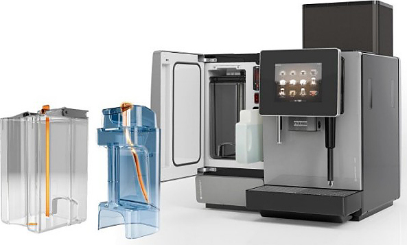 - Сиропная станция FS3 на 3 сиропа (недоступна с UC05, в версии с SU12 Twin устанавливается только с правой стороны от кофемашины)