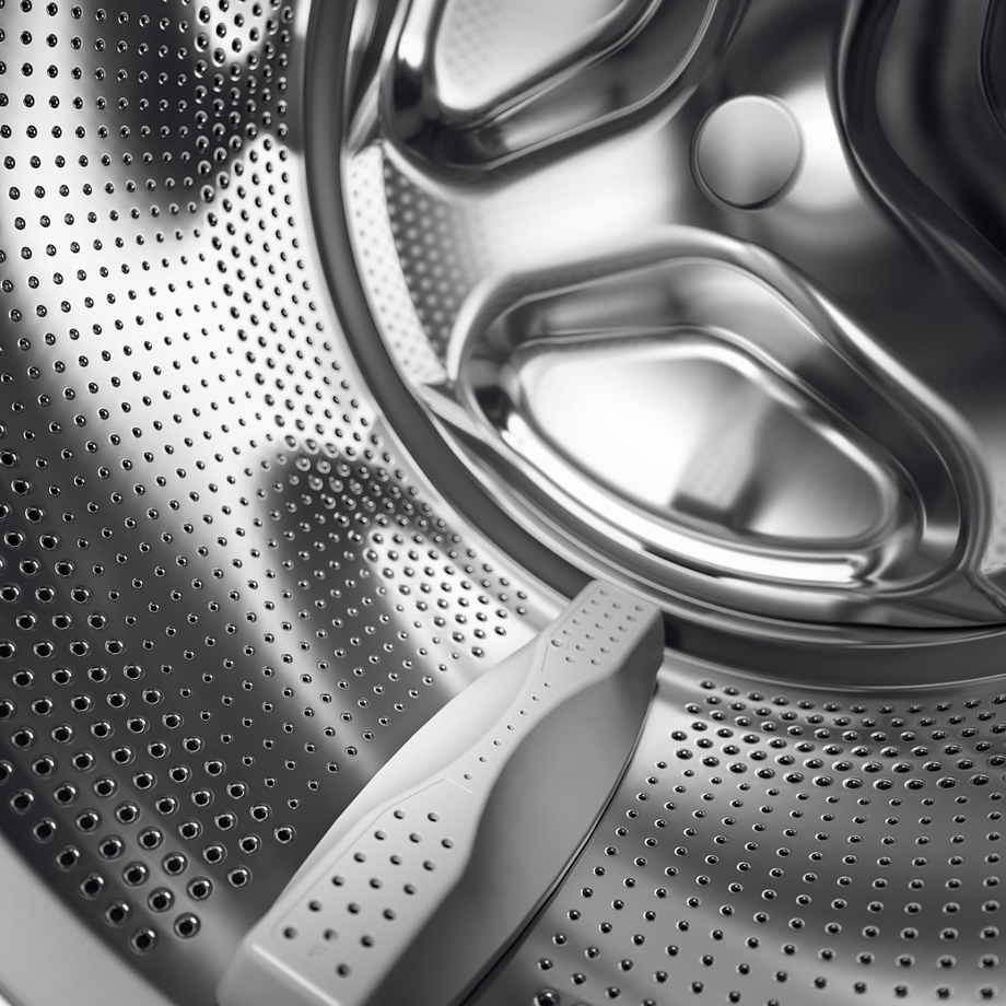 - Уникальная конструкция Quattro Construction™ с 4 амортизаторами, прикрепленными к основанию, обеспечивает отжим с низким уровнем вибраций