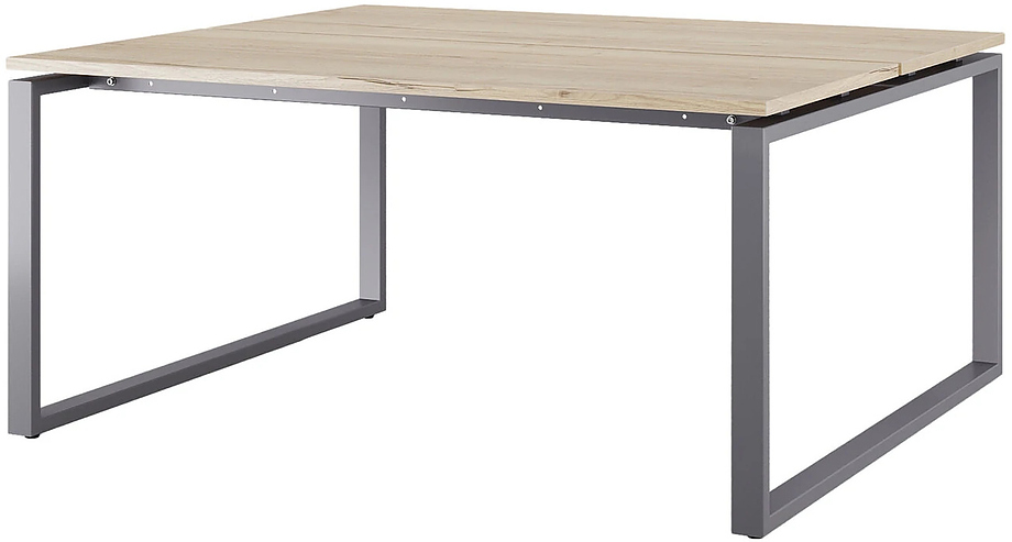 Офисный стол Кобор O1/2-140/140 graphite/naturall предназначен для двух рабочих мест и идеально подходит для офисов и кабинетов руководителей. Модель оснащена О-образными опорами. Материал столешницы - прочный ЛДСП толщиной 25 мм, усиленная снизу металлическим каркасом, материал опор и каркаса - окрашенный металл.