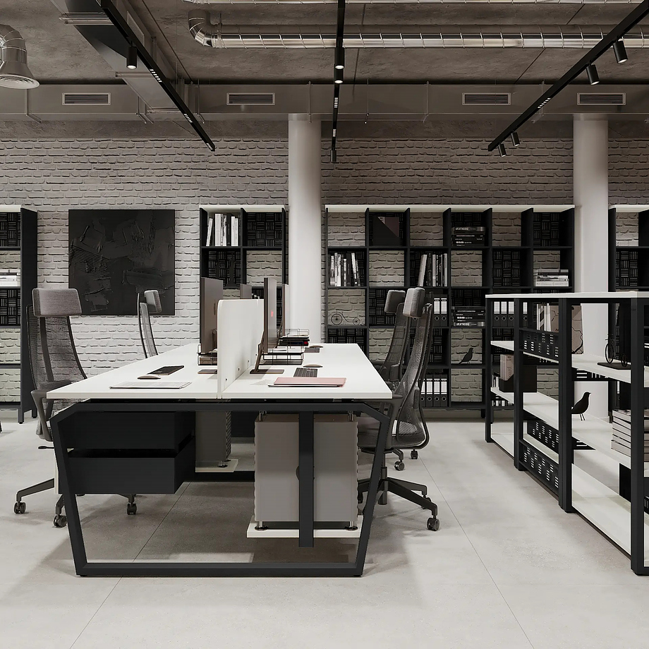 - Столы на металлических каркасах соответствуют современным тенденциям оформления офисных рабочих пространств
