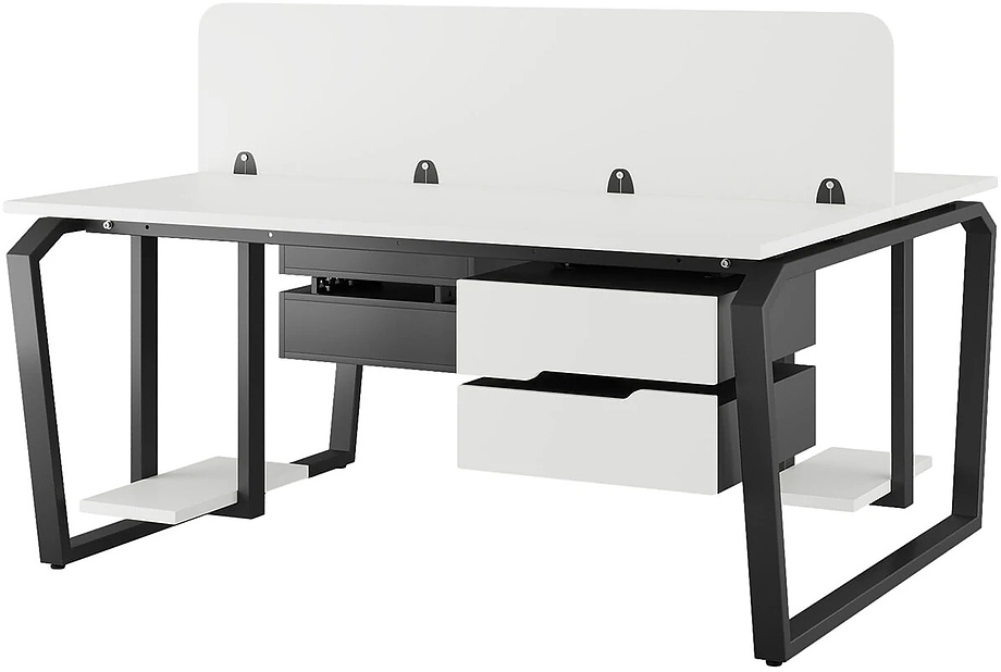 Офисный стол Кобор TB/2-140/140 black/premiuml предназначен для двух рабочих мест и идеально подходит для офисов и кабинетов руководителей. Модель оснащена опорами в виде обратной трапеции с скошенными верхними углами. Материал столешницы - прочный ЛДСП толщиной 25 мм, усиленная снизу металлическим каркасом, материал опор и каркаса - окрашенный металл.