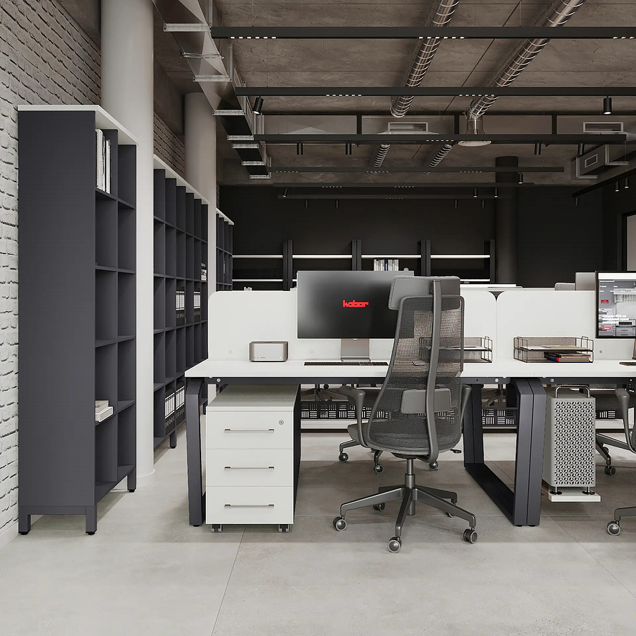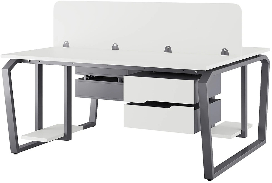 Офисный стол Кобор TB/2-140/140 graphite/premium предназначен для двух рабочих мест и идеально подходит для офисов и кабинетов руководителей. Модель оснащена опорами в виде обратной трапеции с скошенными верхними углами. Материал столешницы - прочный ЛДСП толщиной 25 мм, усиленная снизу металлическим каркасом, материал опор и каркаса - окрашенный металл.