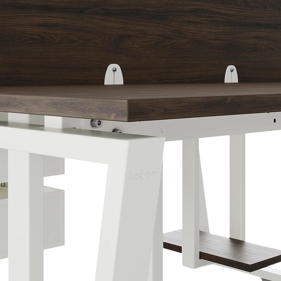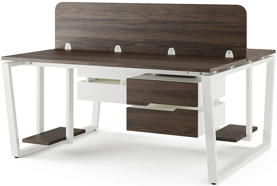 Офисный стол Кобор OTR/2-140/140 white/charlston предназначен для двух рабочих мест и идеально подходит для офисов и кабинетов руководителей. Модель оснащена опорами в виде обратной трапеции. Материал столешницы - прочный ЛДСП толщиной 25 мм, усиленная снизу металлическим каркасом, материал опор и каркаса - окрашенный металл.
