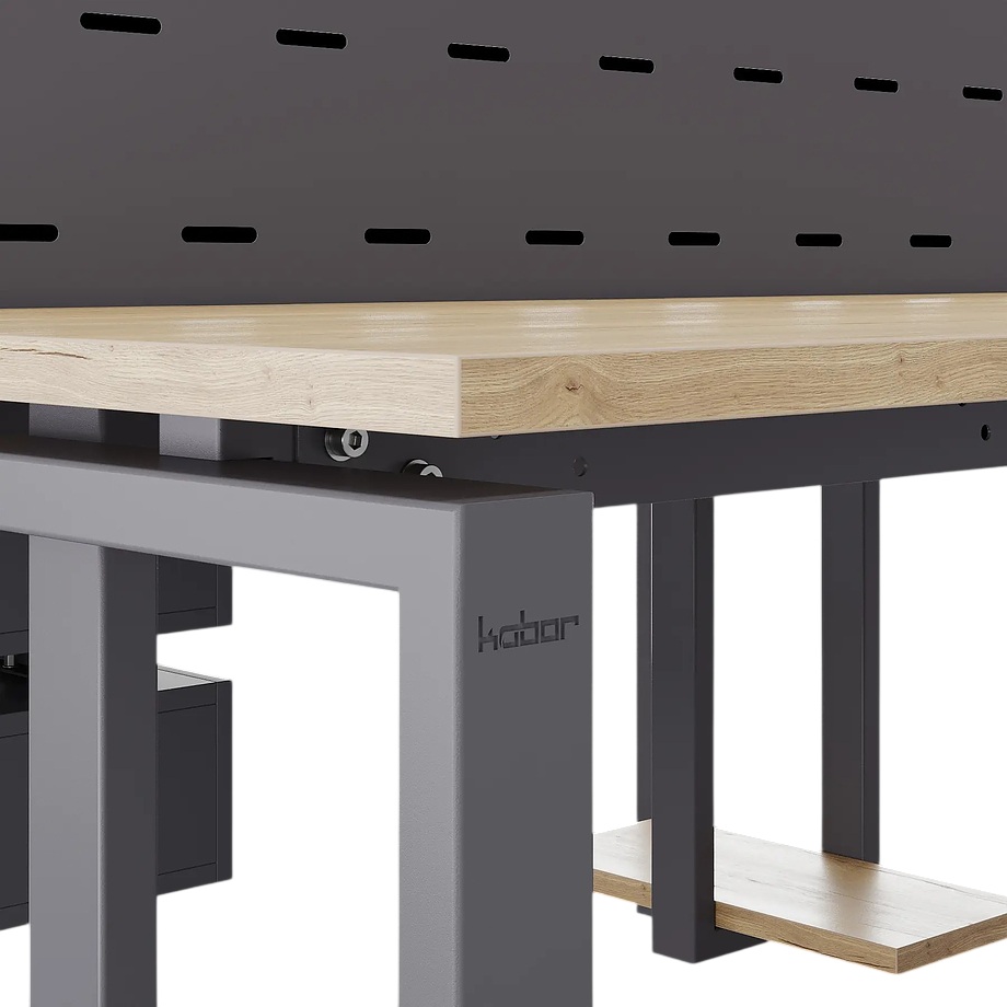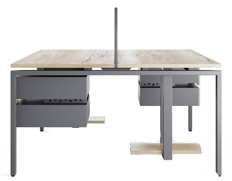 Офисный стол Кобор P/2-140/140 graphite/natural предназначен для двух рабочих мест и идеально подходит для офисов и кабинетов руководителей. Модель оснащена П-образными опорами. Материал столешницы - прочный ЛДСП толщиной 25 мм, усиленная снизу металлическим каркасом, материал опор и каркаса - окрашенный металл.