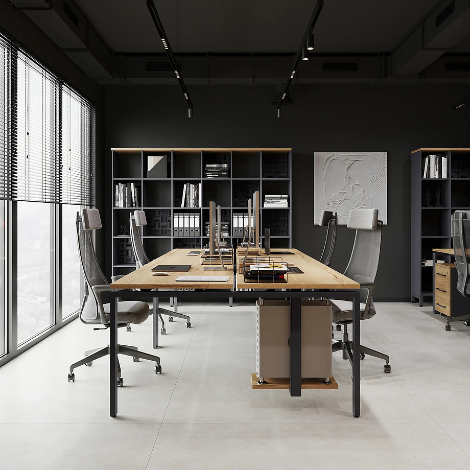 - Столы на металлических каркасах соответствуют современным тенденциям оформления офисных рабочих пространств