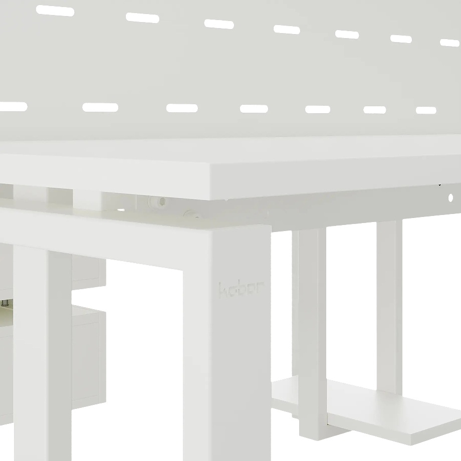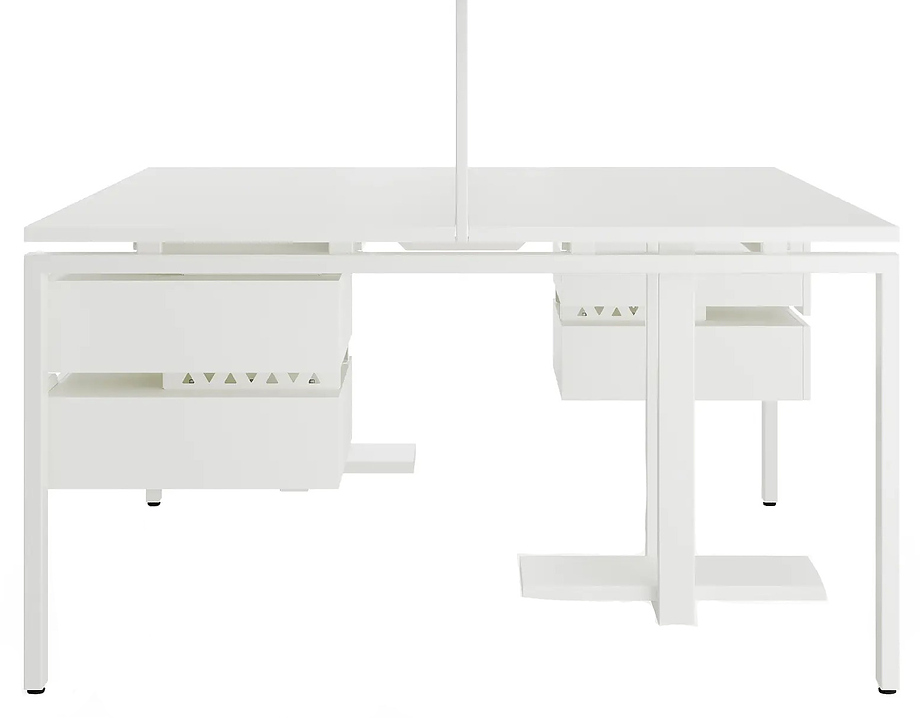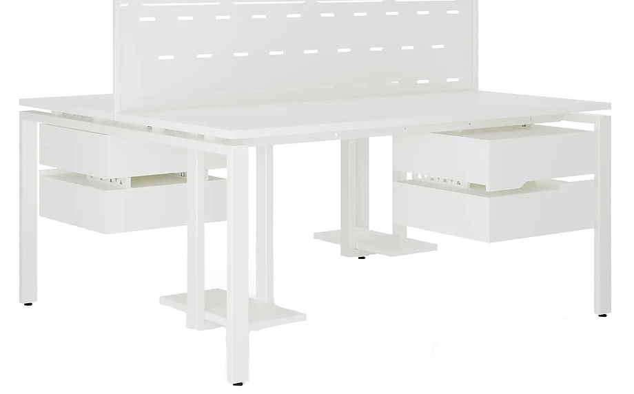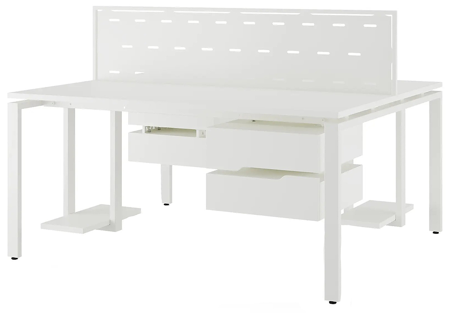Офисный стол Кобор P/2-140/140 white/premium предназначен для двух рабочих мест и идеально подходит для офисов и кабинетов руководителей. Модель оснащена П-образными опорами. Материал столешницы - прочный ЛДСП толщиной 25 мм, усиленная снизу металлическим каркасом, материал опор и каркаса - окрашенный металл.