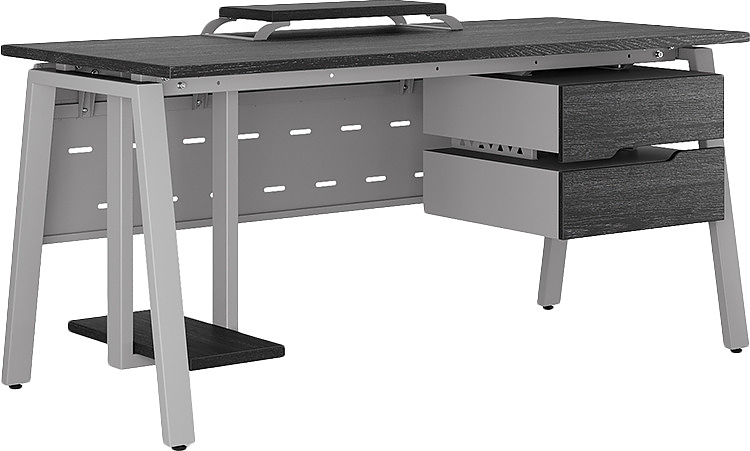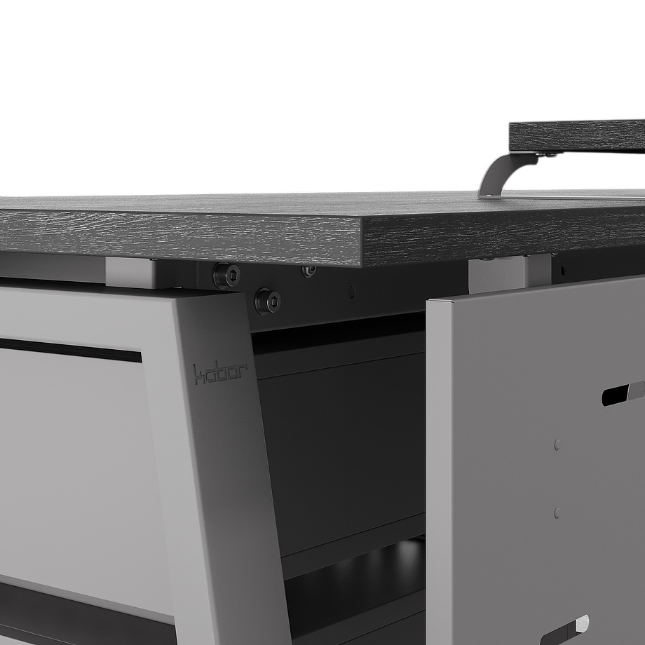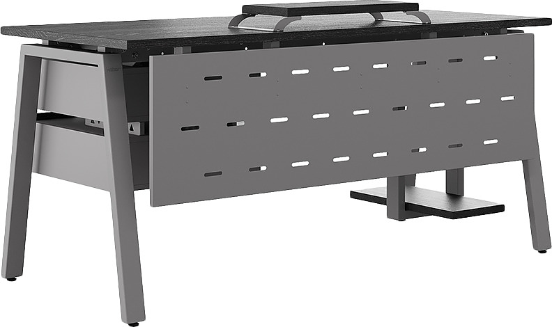 Офисный стол КОБОР A-120/60 aluminum/wood используется в офисных помещениях и кабинетах руководителей. Модель оснащена А-образными опорами. Материал столешницы - прочный ЛДСП толщиной 25 мм, усиленная снизу металлическим каркасом, материал опор и каркаса - окрашенный металл.