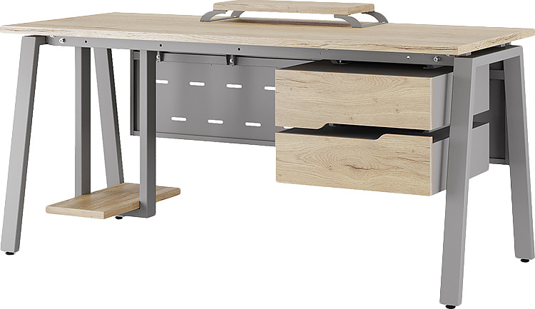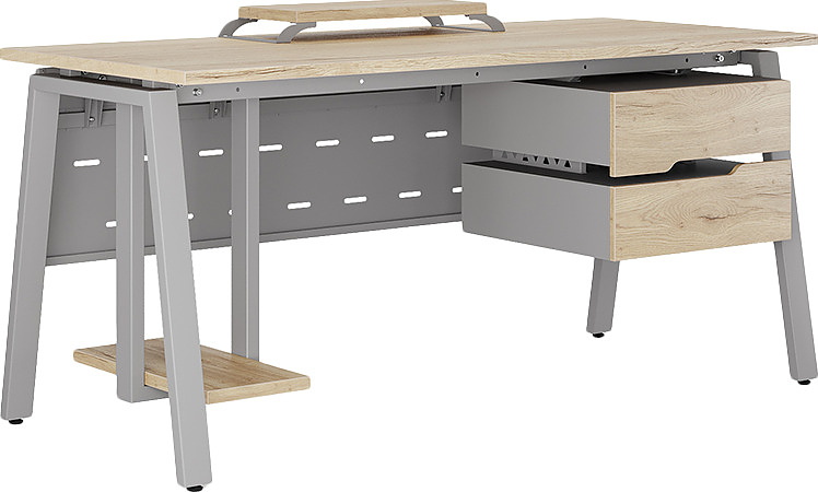 Офисный стол КОБОР A-140/70 aluminum/natural используется в офисных помещениях и кабинетах руководителей. Модель оснащена А-образными опорами. Материал столешницы - прочный ЛДСП толщиной 25 мм, усиленная снизу металлическим каркасом, материал опор и каркаса - окрашенный металл.