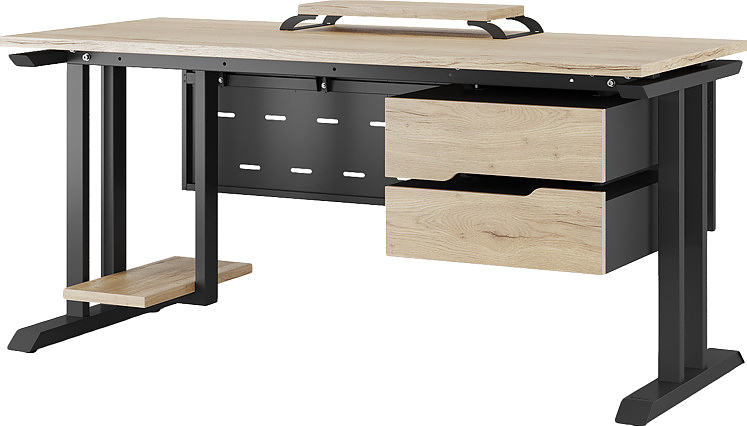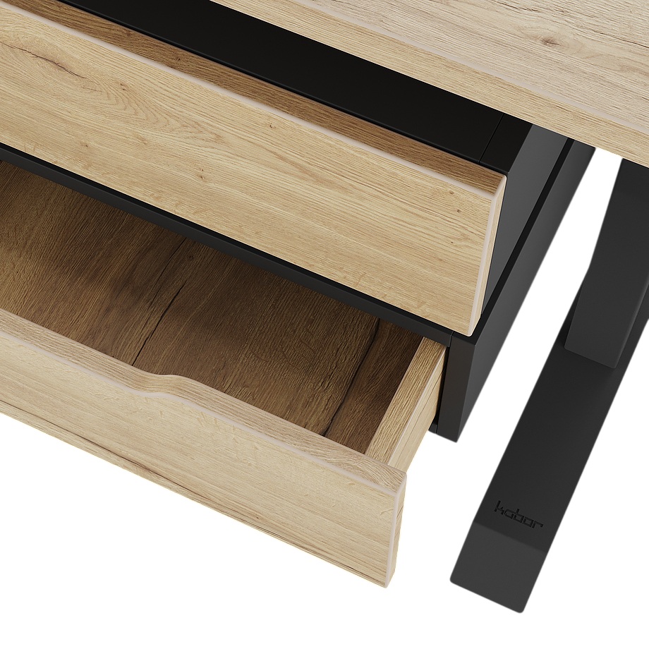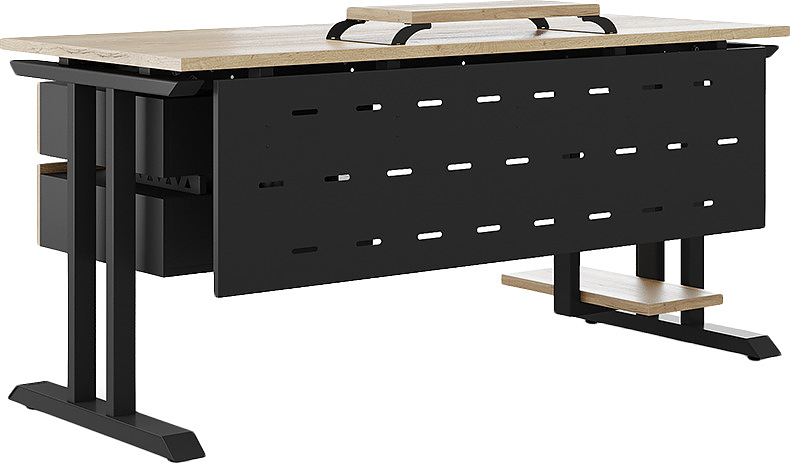 Офисный стол КОБОР T-120/60 black/natural используется в офисных помещениях и кабинетах руководителей. Модель оснащена Т-образными опорами. Материал столешницы - прочный ЛДСП толщиной 25 мм, усиленная снизу металлическим каркасом, материал опор - окрашенный металл.
