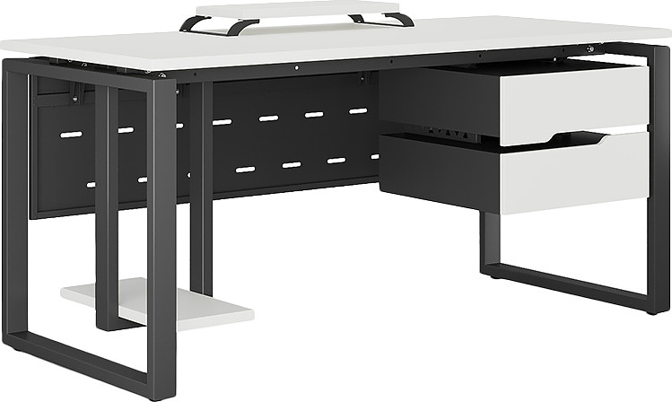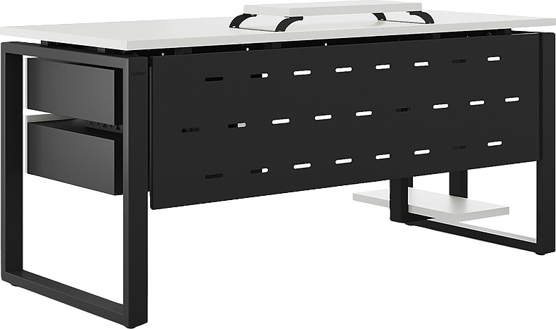 Офисный стол КОБОР O1-140/70 black/premium используется в офисных помещениях и кабинетах руководителей. Модель оснащена О-образными опорами. Материал столешницы - прочный ЛДСП толщиной 25 мм, усиленная снизу металлическим каркасом, материал опор - окрашенный металл.