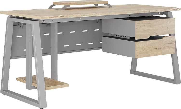 Офисный стол КОБОР TR-140/70 aluminum/natural используется в офисных помещениях и кабинетах руководителей. Модель оснащена трапециообразными опорами. Материал столешницы - прочный ЛДСП толщиной 25 мм, усиленная снизу металлическим каркасом, материал опор - окрашенный металл.