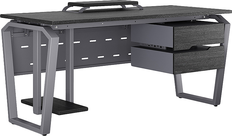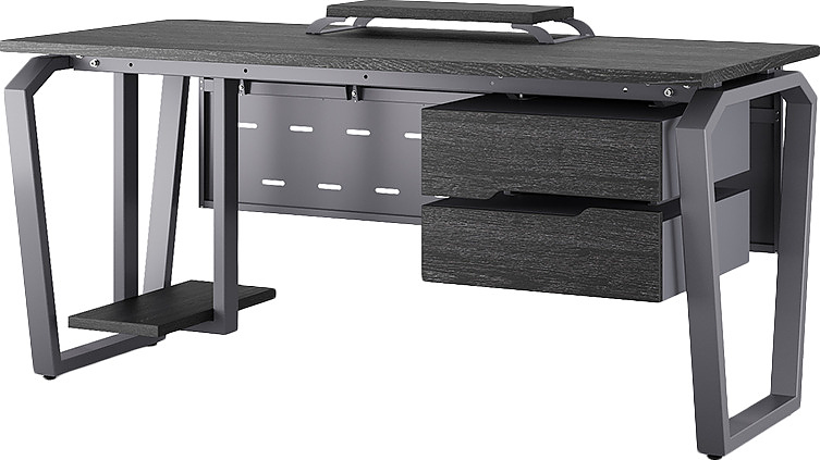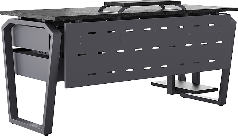 Офисный стол КОБОР TB-140/70 graphite/wood используется в офисных помещениях и кабинетах руководителей. Конструкция модели включает опоры, выполненные в виде перевернутой трапеции со скошенными верхними углами. Материал столешницы - прочный ЛДСП толщиной 25 мм, усиленная снизу металлическим каркасом, материал опор - окрашенный металл.