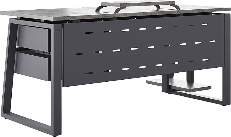 Офисный стол КОБОР TS1-120/60 graphite/chicago используется в офисных помещениях и кабинетах руководителей. Модель оснащена опорами в форме наклонной трапеции. Материал столешницы - прочный ЛДСП толщиной 25 мм, усиленная снизу металлическим каркасом, материал опор - окрашенный металл.