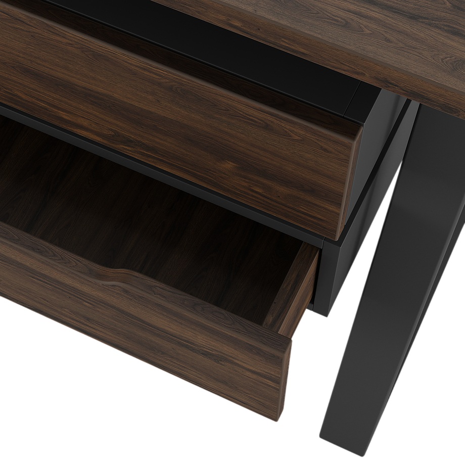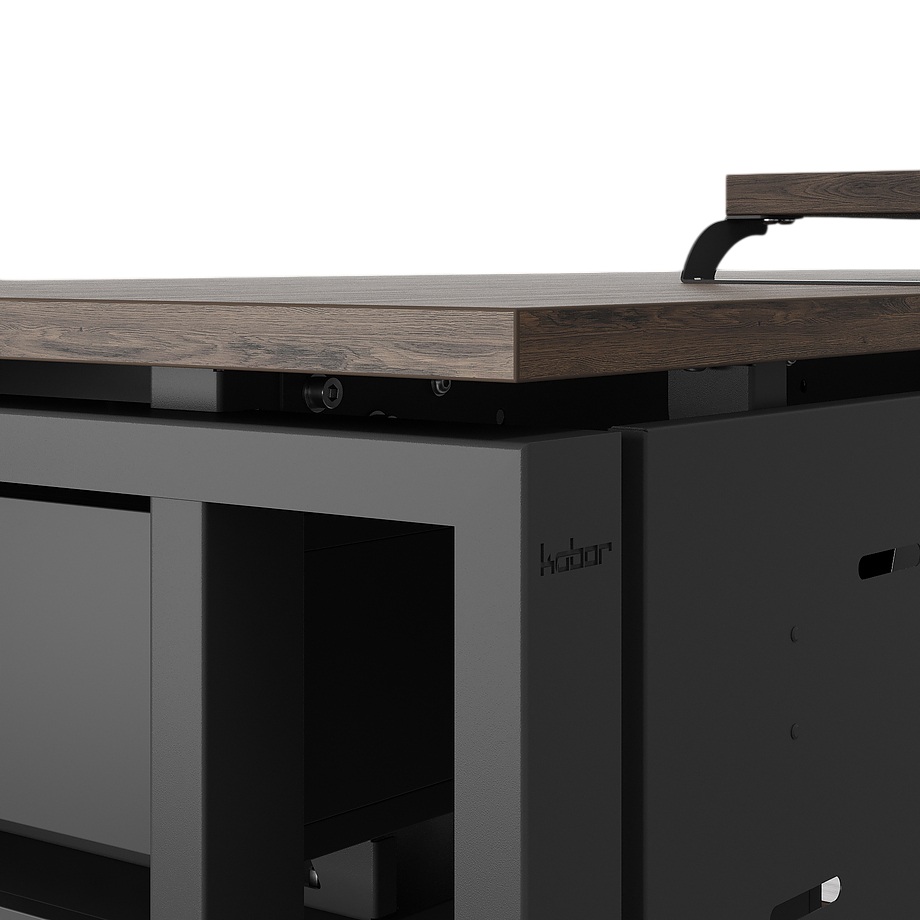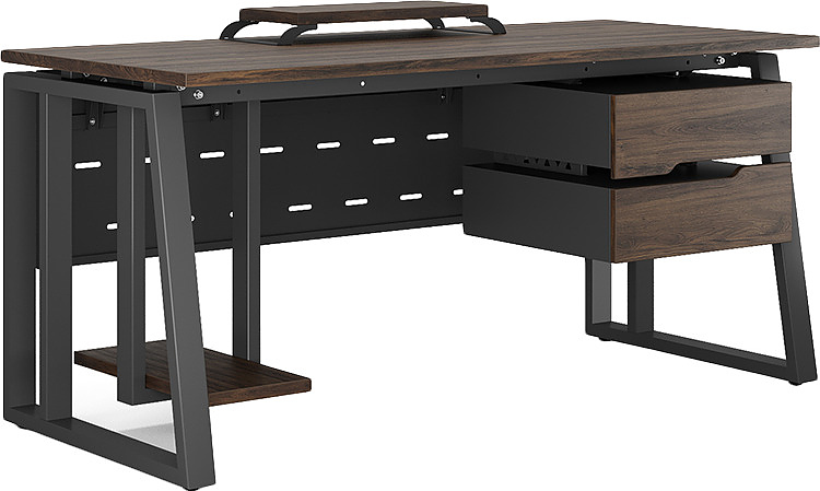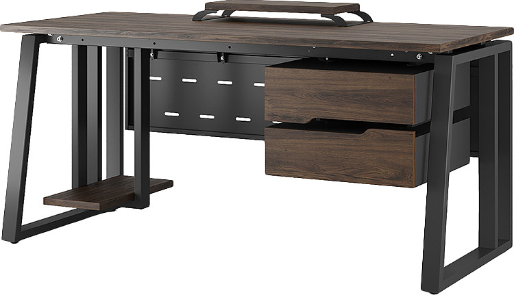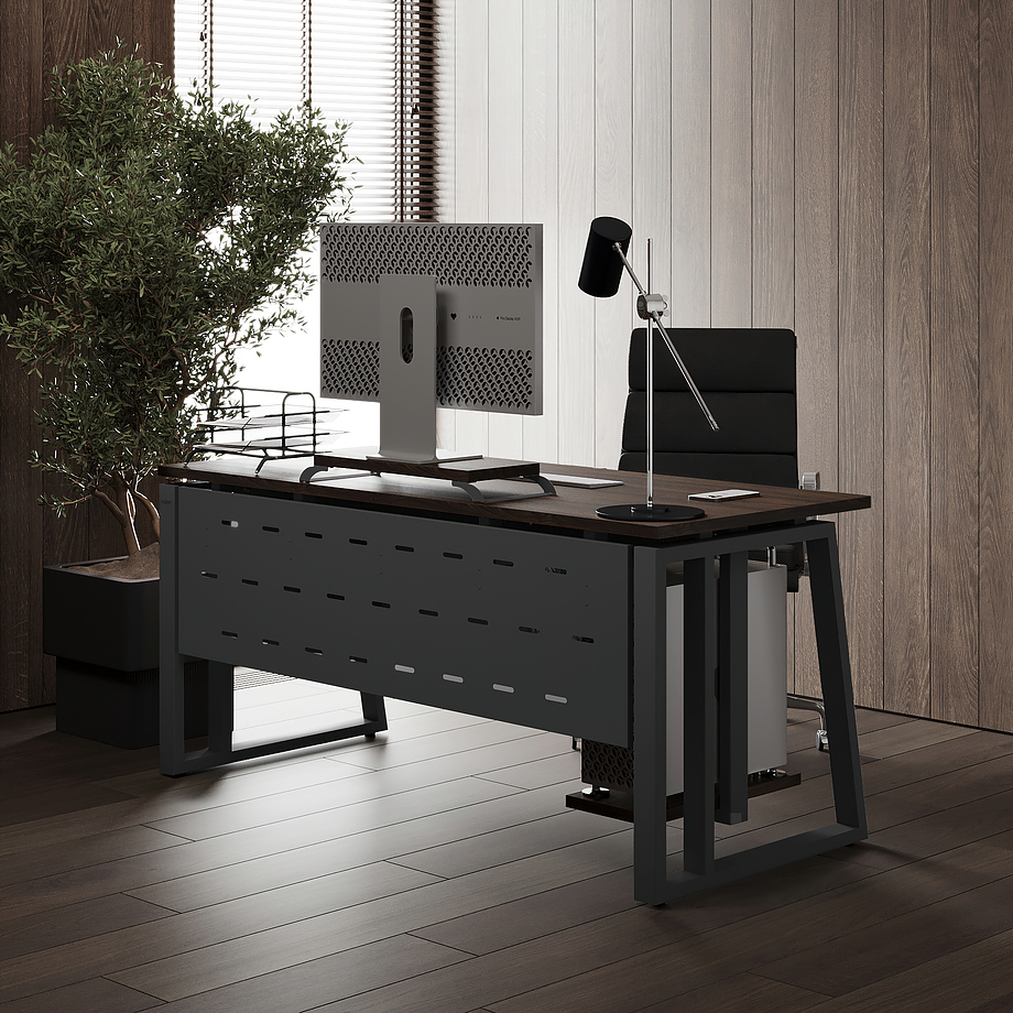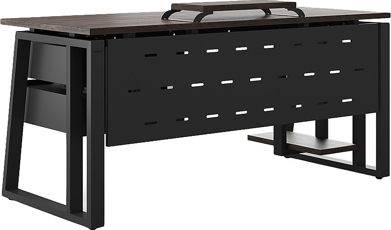 Офисный стол КОБОР TS2-120/60 black/charlston используется в офисных помещениях и кабинетах руководителей. Модель оснащена опорами в форме наклонной трапеции с усиленными вертикальными балками. Материал столешницы - прочный ЛДСП толщиной 25 мм, усиленная снизу металлическим каркасом, материал опор - окрашенный металл.