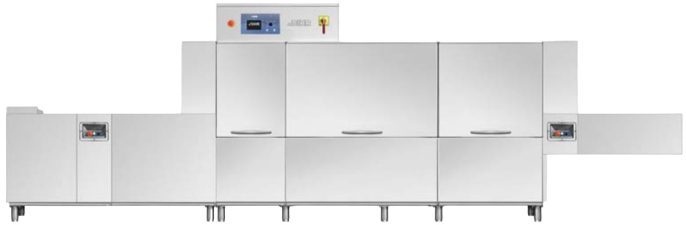 Туннельная машина DIHR LX 751 DX спец.+пальч.конв.+DDE+DRF99M/3 части используется на предприятиях общественного питания, торговли, пищевых производствах, в медицинских и муниципальных учреждениях для мойки сплошных ящиков, форм для тортов и кексов. Модель оснащена электронным управлением, вертикальными самоочищающимися моечными насосами, модульной сушкой и ножками. Материал штампованной кислотоустойчивой ванны и бойлера - высококачественная нержавеющая сталь AISI 316, материал фильтров - нержавеющая сталь.