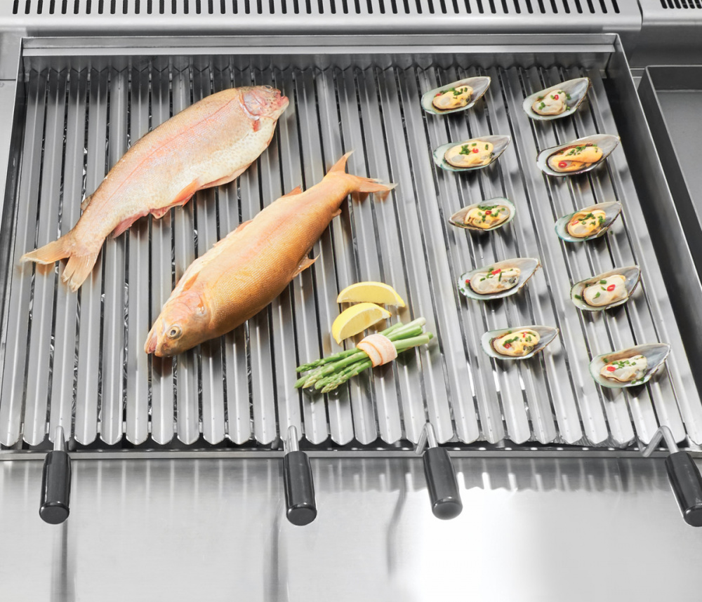 Газовый гриль Abat ГК-90П предназначен для приготовления мяса, рыбы, овощей и других продуктов методом жарки на предприятиях общественного питания и торговли. Модель оснащена газ-контролем, пьезорозжигом, лотком для сбора масла и регулируемыми по высоте ножками.