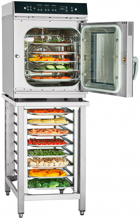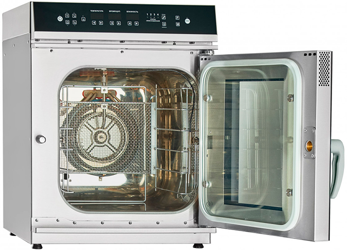 Благодаря небольшим габаритным размерам пароконвектомат подходит для помещений с ограниченным пространством и размещается на столе или подставке.