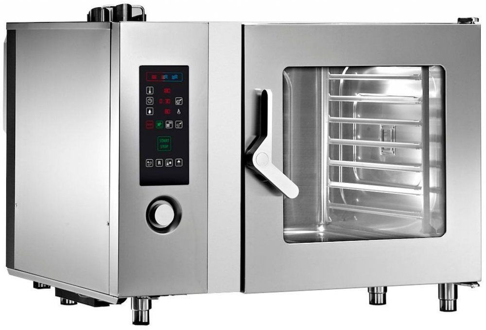 Пароконвектомат Angelo Po FX82E2T предназначен для приготовления различных блюд методом обработки паром и горячим воздухом на предприятиях общественного питания и торговли. Такое оборудование может заменить плиту, жарочный и духовой шкаф, конвекционную печь, опрокидывающуюся сковороду, пищеварочный котел и др. Благодаря специальным технологиям запах приготовляемой пищи не распространяется в помещениях.