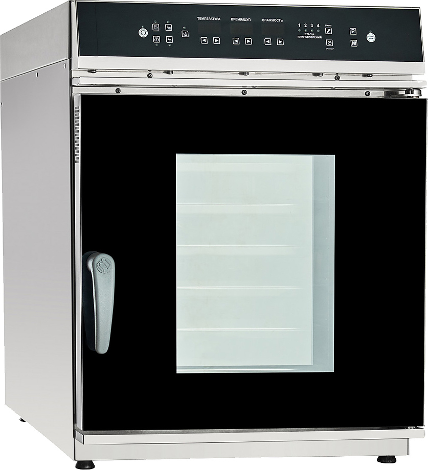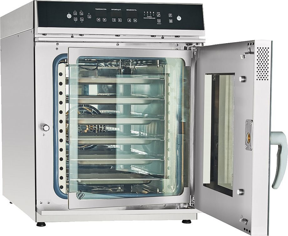 Благодаря небольшим габаритным размерам пароконвектомат подходит для помещений с ограниченным пространством и размещается на столе или подставке.