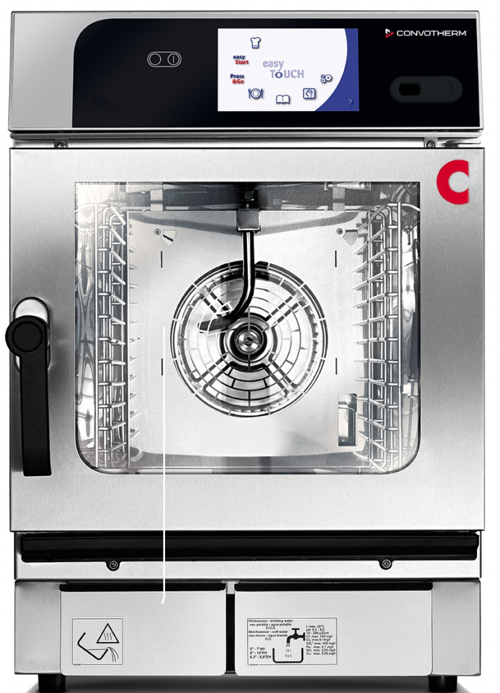 Пароконвектомат Convotherm Mini easyTouch 6.10 mobile предназначен для обжаривания, приготовления на пару, бланширования, запекания и других видов тепловой обработки продуктов на предприятиях общественного питания. Цифровой дисплей, возможность автономной работы без подключения к водопроводу и канализации, вентилятор с уменьшенной скоростью вращения и автореверсом.