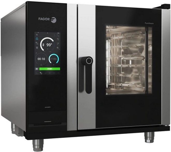 Пароконвектомат Fagor APW-061-E R LW S предназначается для приготовления блюд широкого спектра, а также выпечки хлебобулочных и кондитерских изделий на предприятиях общественного питания, торговли и пищевых производствах. Управление при помощи сенсорной панели с экраном 10''. Пароконвектомат оснащен ручным душем-рулеткой, мультизонным термощупом, таймером отсрочки запуска, системой охлаждения рабочей камеры, системами контроля HACCP,  быстрого закрытия двери и обнаружения ошибок. 4 режима приготовления - пар, регенерация, конвекция и комбинированный режим. 5 режимов автоматической мойки. Режим автоматического приготовления блюд и функция предварительного разогрева рабочей камеры.