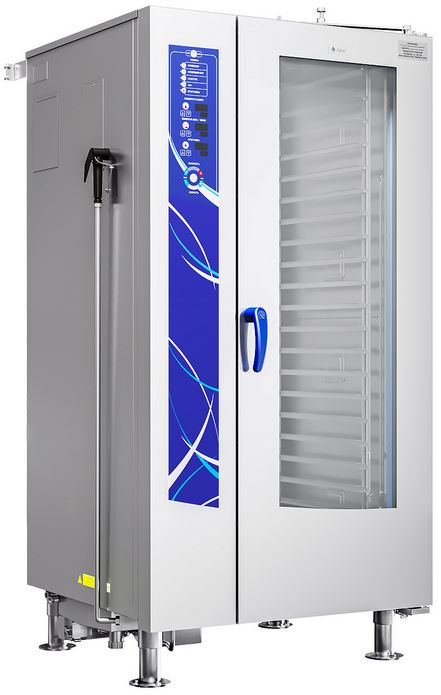 Abat ПКА 20-1/1ПМФ2-01 используется на камбузах судов как самостоятельно, так и в составе технологической линии для обжарки, готовки на пару, бланширования, запекания и других тепловых обработок продуктов питания. Модель заменяет плиту, конвекционную печь, жарочный шкаф, духовку, опрокидывающуюся сковороду, пищеварочный котел, фритюрницу и др. В модели установлена подсветка, жировой фильтр, душ для мойки и дверью. Материал корпуса и внутренней отделки - высококачественная нержавеющая сталь, материал двери - двойное стекло.