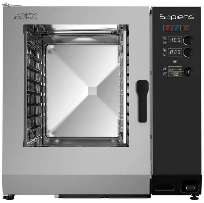 Пароконвектомат Lainox SAPIENS BOOSTED SAE102B предназначен для приготовления различных блюд, хлебобулочных и кондитерских изделий на предприятиях общественного питания, торговли и пищевых производствах. Модель оснащена управлением Digital, автоматической мойкой, ручным душем, реверсом, термощупом, держателями лотков, вентилятором с 6 скоростями, внутренней подсветкой и левым открыванием двери. Материал корпуса - высококачественная нержавеющая сталь AISI 304, материал камеры - высококачественная нержавеющая сталь AISI 304 18/10 (толщина 1 мм).