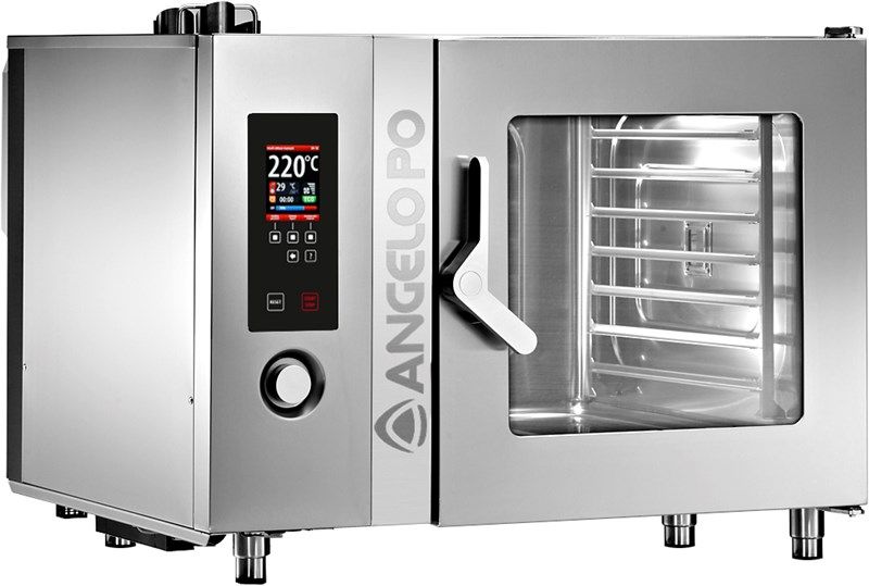 Пароконвектомат Angelo Po FX82E3T предназначен для приготовления различных блюд методом обработки паром и горячим воздухом на предприятиях общественного питания и торговли. Такое оборудование может заменить плиту, жарочный и духовой шкаф, конвекционную печь, опрокидывающуюся сковороду, пищеварочный котел и др. Благодаря специальным технологиям запах приготовляемой пищи не распространяется в помещениях.