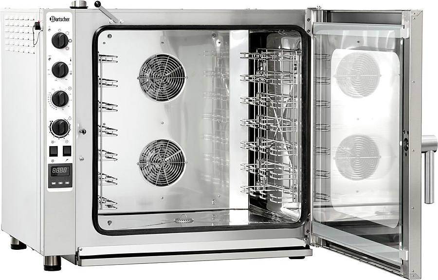 Пароконвектомат Bartscher M7110 116618 предназначен для обжаривания, приготовления на пару, бланширования, запекания и других видов тепловой обработки продуктов на предприятиях общественного питания и торговли. Корпус выполнен из хромникелевой стали.