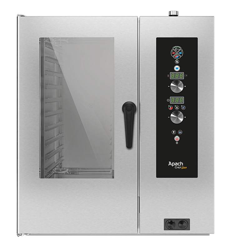Пароконвектомат Apach Chef Line LEI101S WCF предназначен для обжаривания, приготовления на пару, бланширования, запекания и других видов тепловой обработки продуктов на предприятиях общественного питания и торговли. Модель оснащена электронной панелью управления со светодиодным дисплеем, отдельной кнопкой управления 4 циклами готовки, кнопкой с внутренней подсветкой для доступа к программам и переключателями Scroller Plus с принципом работы "Крути и Нажимай" для подтверждения выбора. Корпус электронагревателей выполнен из нержавеющей стали INCOLOY 800, решетки - из нержавеющей стали.