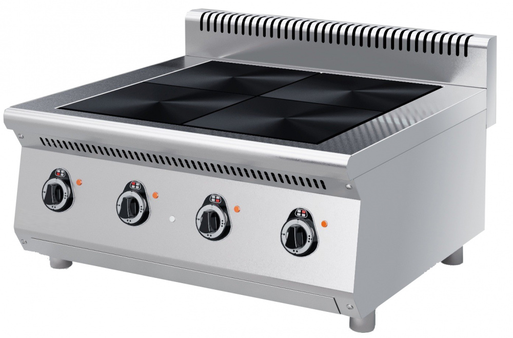 Электрическая плита KAYMAN ПЭ-4-121-МХ используется на предприятиях общественного питания, торговли и пищевых производствах для приготовления блюд в наплитной посуде. 4 терморегулятора на передней панели. Плита оснащена воздуховодом. Материал корпуса - нержавеющая сталь.