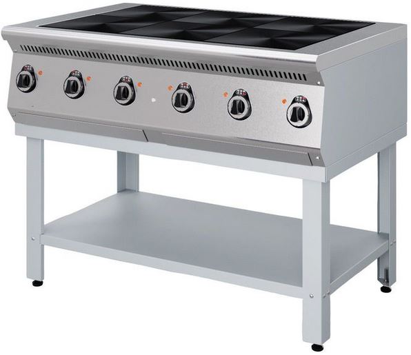 Электрическая плита KAYMAN ПЭ-6-110-МХ используется на предприятиях общественного питания, торговли и пищевых производствах для приготовления и подогрева первых, вторых и третьих блюд. Модель оснащена термовыключателем и подставкой для инвентаря. Материал лицевой части - высококачественная нержавеющая сталь, материал поставки и боковин - крашенная сталь, материал конфорок - чугун.
