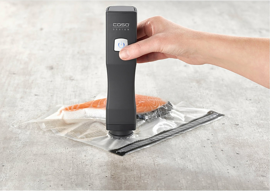 Ручной вакуумный упаковщик CASO Vacu OneTouch используется на предприятиях пищевой промышленности, общественного питания и торговли для герметичной упаковки полуфабрикатов и готовых блюд в пакетах или контейнерах, что способствует продлению их срока хранения. Модель с автоматической остановкой, съемным уплотнителем и светодиодным индикатором зарядки. Материал корпуса - пластик.