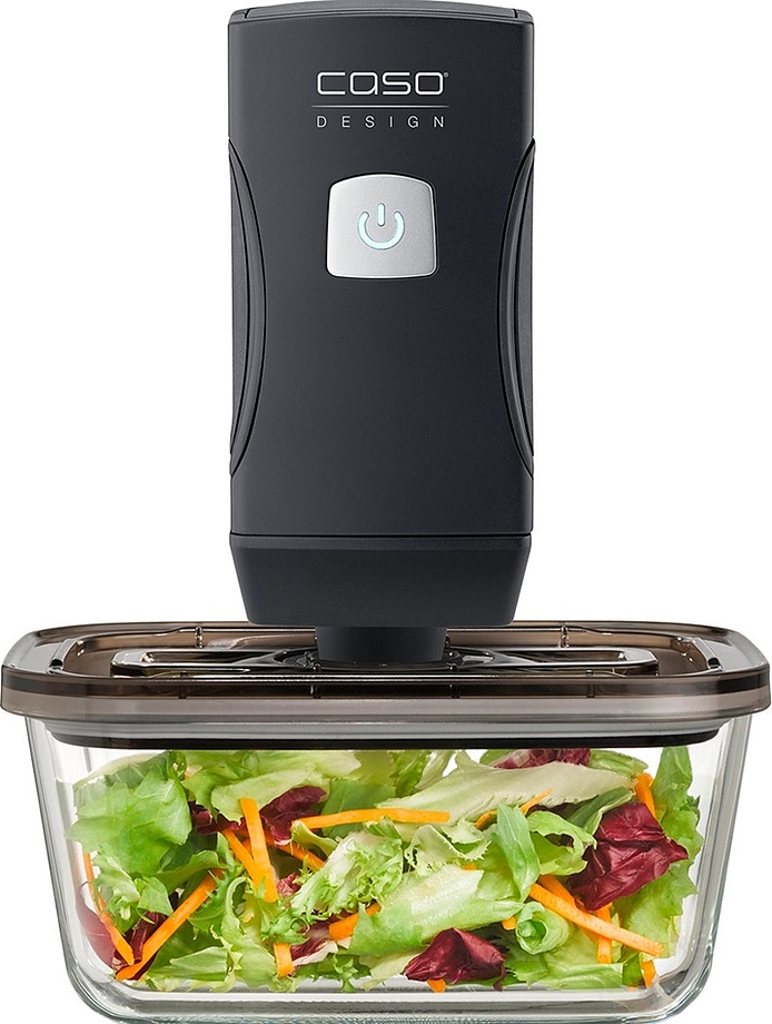 Набор CASO Vacu OneTouch Pro Set используется на предприятиях пищевой промышленности, общественного питания и торговли для герметичной упаковки полуфабрикатов и готовых блюд в пакетах или контейнерах, что способствует продлению их срока хранения. Модель с вакуумным насосом и литий-ионным аккумулятором. Материал корпуса вакууматора - пластик, материал контейнеров - стекло.