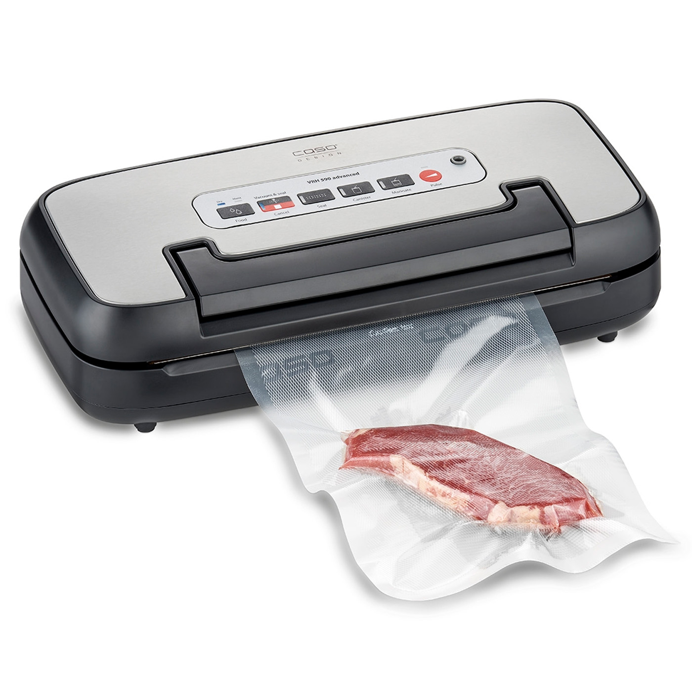 Вакуумный упаковщик CASO VRH 590 используется на предприятиях пищевой промышленности, общественного питания и торговли для герметичной упаковки полуфабрикатов и готовых блюд в пакетах или контейнерах, что способствует продлению их срока хранения. Модель оснащена индикацией режимов работы, электронным контроллером температуры сварочного шва, встроенным резаком, съемной камерой, съемным поддоном для сбора влаги и удобной ручкой. Материал корпуса - прочный пластик, материал крышки с вставкой - высококачественная нержавеющая сталь.