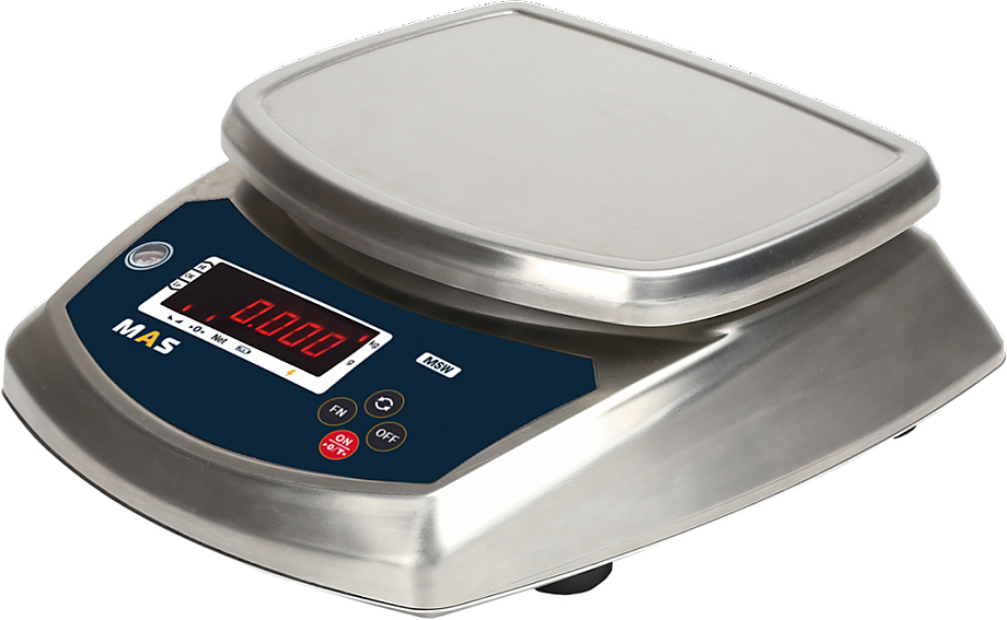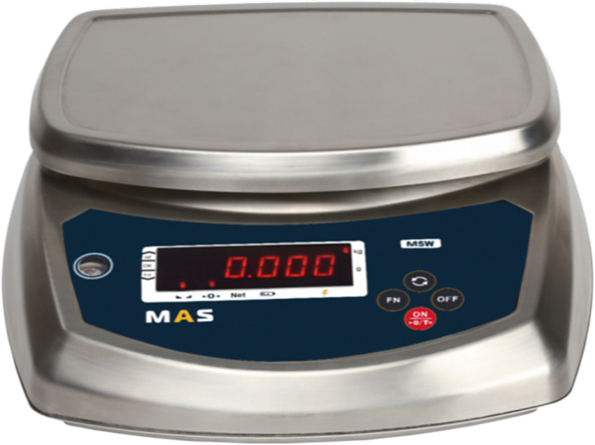 Порционные весы MAS MSW-6 используются на предприятиях общественного питания, торговли, пищевых производствах, складских помещениях и прочих сферах для точного взвешивания различных товаров и продуктов питания. Модель оснащена мембранной влагостойкой клавиатурой и ярким LED-дисплеем с размером символов 15 мм. Материал платформы - нержавеющая сталь AISI 304.