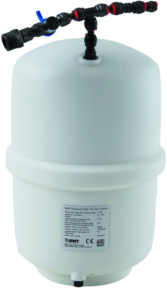 Накопительный бак BWT Pressure Tank 11L используется совместно с системами обратного осмоса BWT для аккумулирования чистой, подготовленной и оптимизированной воды на предприятиях общественного питания, торговли и пищевых производствах. Элементы накопительного бака изготовлены из материала безопасного для применения в пищевом производстве и устойчивого к перепадам давления.