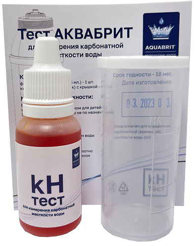 Тест на карбонатную жесткость Аквабрит КН используется для определения карбонатной жесткости (KH) холодной водопроводной воды на объекте монтажа фильтра. Единицы измерения жесткости - градусы по немецкой шкале (°dH).